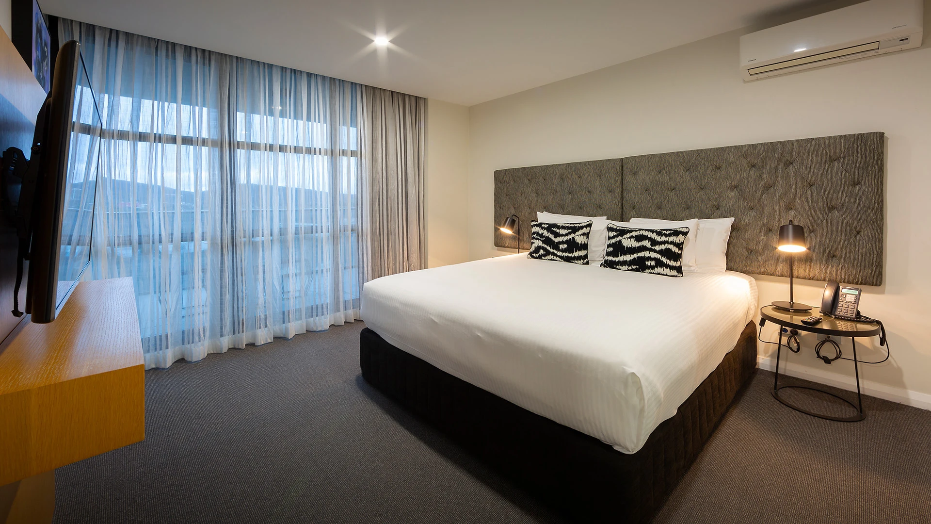 When it comes time to explore, Canberra’s famous attractions are within easy reach. Pay tribute to fallen soldiers at the Australian War Museum, journey through history and culture at the National Museum of Australia or step behind the scenes at the Parliament of Australia. After days exploring, visit the onsite Marble & Grain, an ambient European-style steakhouse, featuring red-leather banquette seating and dark timber panelling.